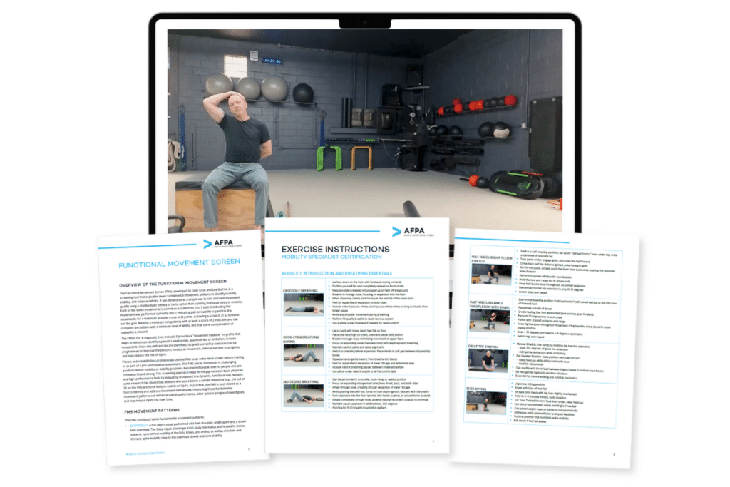 The AFPA Mobility Specialist Certificate provides personal trainers with a clear, repeatable system for improving movement quality. You’ll learn how to assess common limitations, apply targeted mobility and stability drills, and reinforce improvements through strength work without stepping outside your scope or disrupting your existing session structure.